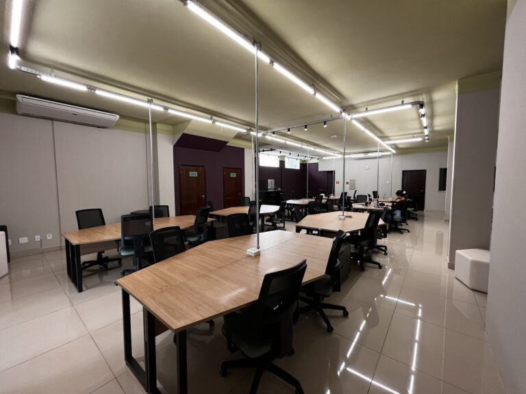 Espaço compartilhado de trabalho com estações rotativas, para profissionais dinâmicos e inspiracionais, potencializando o networking.